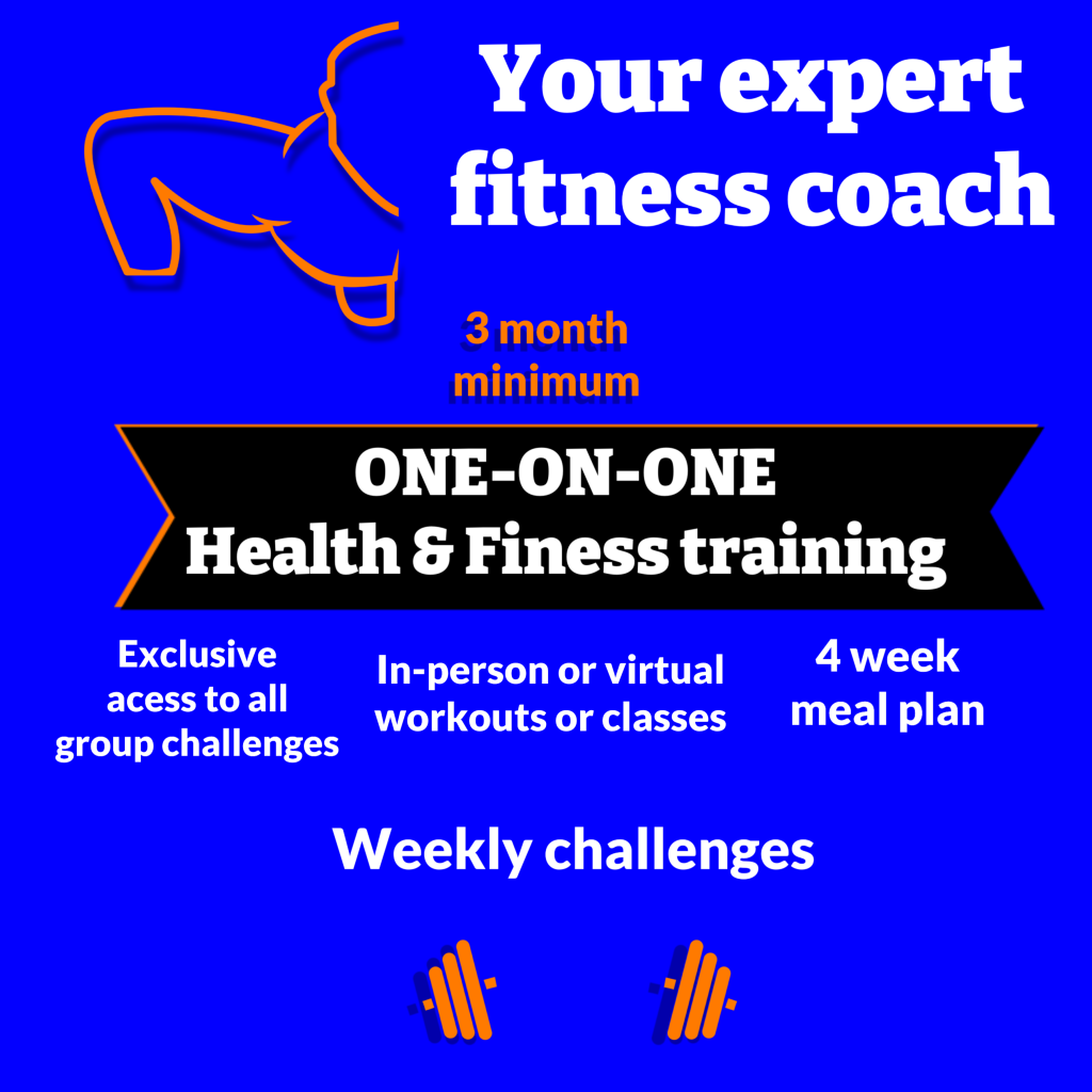 If you’re not interested in one of my classes, consider trying out my personalized workout or meal plans, where you’ll receive a customized fitness or nutrition plan tailored specifically to your needs and goals.